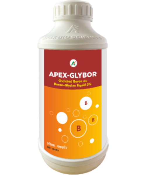 Apex Glybor enhances fruit quality and shelf life, facilitates sugar translocation, improves active salt absorption, and aids in hormone movement. It also promotes pollen germination, ensuring better flowering and fruit set for higher productivity.